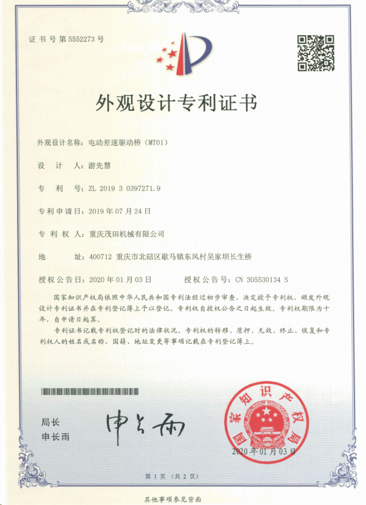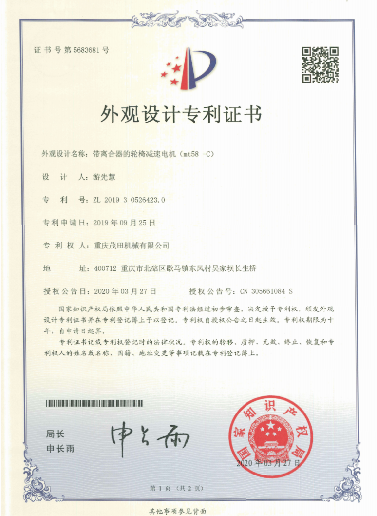 重慶茂田機械有限公司是國家級小巨人企業(yè)、國家高新技術(shù)企業(yè)、重慶市專精特新企業(yè)、重慶市知識產(chǎn)權(quán)優(yōu)勢企業(yè),致力于現(xiàn)代化山地農(nóng)業(yè)機械、各類非標減速電機及其控制系統(tǒng)的研發(fā)、生產(chǎn)、銷售。擁有重慶市市級研發(fā)平臺1個 目前研發(fā)、生產(chǎn)、銷售產(chǎn)品廣泛應用于農(nóng)業(yè)機械、醫(yī)療康復設備、交通代步工具、智能搬運設備、以及機器人動力系統(tǒng)等領域。我們的產(chǎn)品具有完整的自主知識產(chǎn)權(quán),擁有多項專利技術(shù)及“重慶